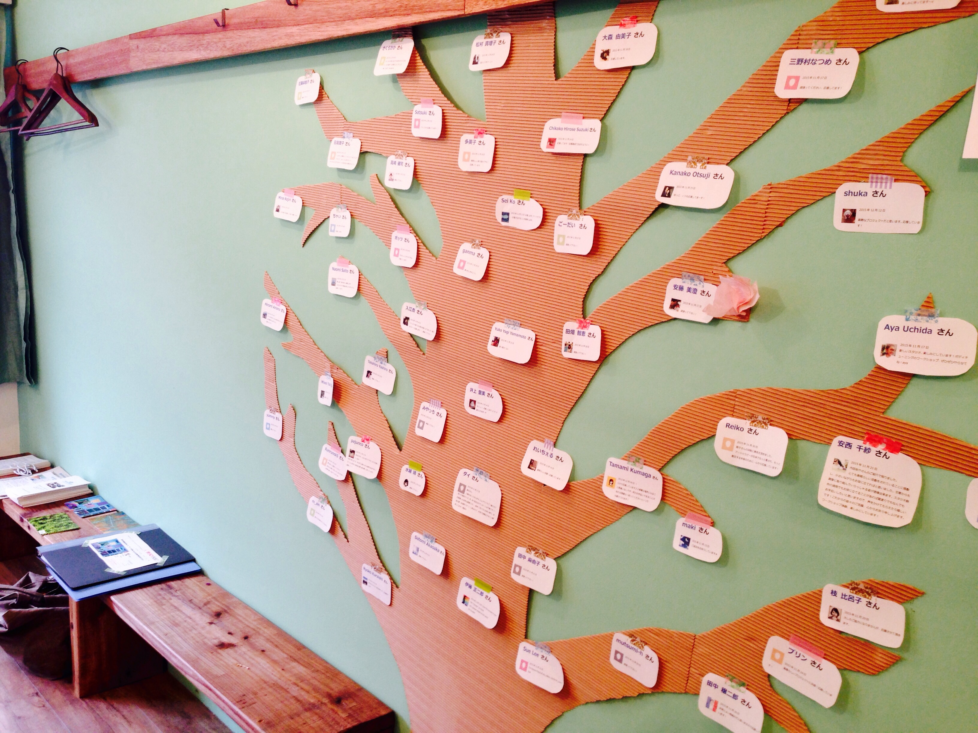 スタジオ開設にあたりご支援くださった皆さまからのメッセージによるウォールツリーを3月一杯スタジオに展示します。